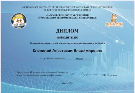 • I место в номинации «Stream» заняла Кленина Анастасия,