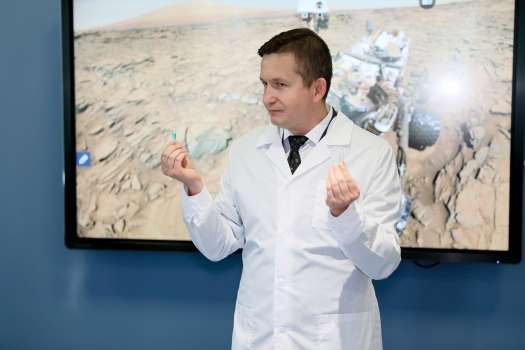 Под руководством методиста инновационно-методического отдела Игоря Сергеевича Маслова ребята совершили «научную экспедицию на Марс». Космическая миссия юных исследователей была связана с созданием первой базы на Марсе, чтобы изучить условия, необходимые для жизни человека на этой планете. Исследовательские дроны обнаружили на полюсах замороженную воду, которую «доставили» в лабораторию ИТШ. Однако не вся вода пригодна для жизнедеятельности человека. Ребята вместе с учителем определяли, какой из двух образцов воды наиболее похож по составу растворённых веществ на земную воду, используя химические реактивы.