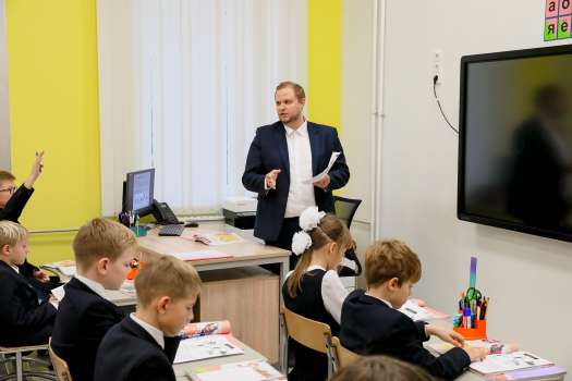 На уроке английского языка в классе 4.2 Вадим Андреевич Орлов организовал деятельность школьников, направленную на повторение и закрепление пройденного материала, а также подготовку к контрольной работе.