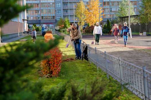 Были собраны листья и мусор, подметены дорожки, приведены в порядок газоны, клумбы и декоративные растения, а также очищена территория вдоль школьного забора.