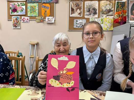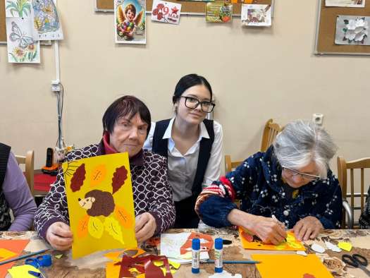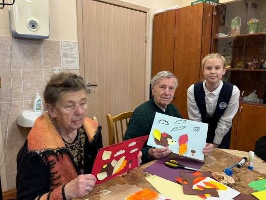 Посещать старших товарищей, дарить им внимание и душевное общение стало для школьников доброй традицией. В осенние дни особенно приятно разделить радость общения и творчества. Юные волонтёры подготовили мастер-класс и с трепетом помогали бабушкам и дедушкам создавать поделки с природными мотивами.