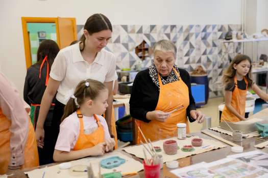 Осеннее настроение царило и на мастер-классе «Осенние мотивы» по глинопластике, который провела Мария Андреевна Медведева. Из пластичной глины участники создали тёплые осенние композиции, вдохновлённые природой, проявив фантазию и художественный вкус.