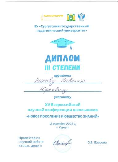 · Раков Савелий, обучающийся 9.2 класса Инженерно-технологической школы № 777 Санкт-Петербурга;