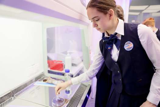Интегрированный урок английского языка и химии «Профессия микробиолога» в классе 9.1 провели Русакова Елена Владимировна и Долгополова Екатерина Александровна. Ученики примерили на себя роль биоинженеров-микробиологов: комплексно познакомились с особенностями данной профессии, изучили научно-техническую терминологию на английском языке, получили информацию о потенциальных местах работы и высших учебных заведениях, где можно получить профильное образование. Во время урока группа успешно выполнила практическую работу «Посев микроорганизмов» в новой стерильной лаборатории школы «Инфохимия» и представила свои выводы в формате научного круглого стола.
