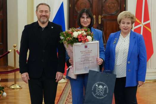 Особо отмечены были и представители педагогического коллектива ИТШ № 777. Почётные грамоты и благодарности Законодательного Собрания Санкт-Петербурга вручены директору школы Вере Владимировне Князевой и учителю математики Ирине Евгеньевне Девятериковой за подготовку призёра, высокий профессионализм и вклад в развитие олимпиадного движения.