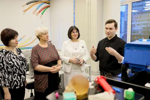 Во время знакомства слушателей с образовательной средой Инженерно-технологической школы директор подробно представила инновационную инфраструктуру учреждения. Вера Владимировна рассказала об особенностях работы Центра инженерных компетенций «Инженер.ру», принципах функционирования Центра дополнительного образования «Лахта-полис», а также о деятельности Центра профессионального самоопределения «ПрофВыбор». Кроме того, Вера Владимировна представила основные авторские проекты, предназначенные для школьников, их родителей и педагогов: «Диалоги без галстуков. Путь к успеху», «Дни университета», «Классная суббота», фестиваль «Инженерное вдохновение» и другие инициативы.