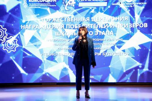 С приветственным словом к участникам церемонии обратилась директор Инженерно-технологической школы № 777 Санкт-Петербурга, президент Консорциума по развитию школьного инженерно-технологического образования, Почётный работник общего образования Вера Владимировна Князева. Вера Владимировна поздравила победителей и призёров школьного этапа, а также поблагодарила социальных партнёров — представителей высшей школы, членов жюри — за качественную и своевременную разработку конкурсных заданий регионального этапа и участие в работе экспертной комиссии по оценке конкурсных проектов.