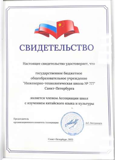 С 2021 года действует соглашение о партнёрстве Инженерно-технологической школы № 777 со школой Хаоцзян в Макао. В рамках сотрудничества ежегодно проводятся телемосты, в ходе которых учащиеся двух стран обсуждают актуальные темы, знакомятся с культурными традициями, исполняют песни на русском и китайском языках, а также реализуют совместные творческие проекты. Такое взаимодействие способствует не только углублению знаний, но и формированию устойчивых дружеских связей между школьниками России и Китая.