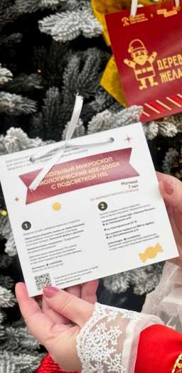 Сняв открытку с праздничного дерева, Вера Владимировна узнала о желании семилетнего Матвея из Адмиралтейского района. Мальчик мечтает о школьном биологическом микроскопе. Директор школы рассказала, что буквально на прошлой неделе такой же подарок на Новый год попросил её внук, который в следующем году пойдёт в школу. Именно поэтому было принято решение приобрести два микроскопа, один из которых будет передан Матвею, чтобы его новогодняя мечта обязательно сбылась.