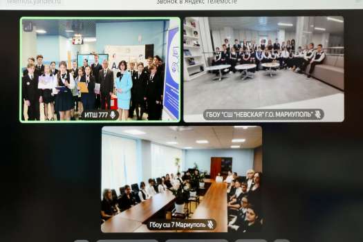 В формате видеоконференцсвязи состоялось онлайн-подключение со школами Мариуполя. Представители учреждений — участников акции — передали привет и тёплые поздравления с наступающим Новым годом обучающимся школы № 7 и средней школы «Невская».