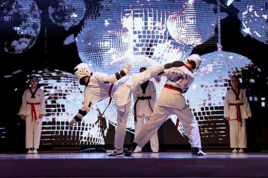 Затем зрителей покорили юные гиревые жонглёры, продемонстрировавшие впечатляющее мастерство, а спортсмены объединения «Тхэквондо» поразили зал своими эффектными приёмами.