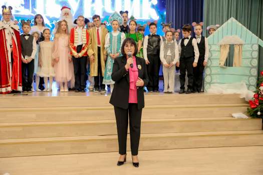 Почётным гостем праздничного мероприятия стала директор Инженерно-технологической школы № 777 Вера Владимировна Князева. Обращаясь к участникам спектакля, Вера Владимировна поблагодарила юных артистов за талант, искренность и подаренное зрителям новогоднее настроение, выразила особые слова признательности педагогу Татьяне Николаевне Трахановой за высокий профессионализм и вклад в развитие творческих способностей обучающихся, а также поздравила всех присутствующих с наступающими новогодними праздниками.