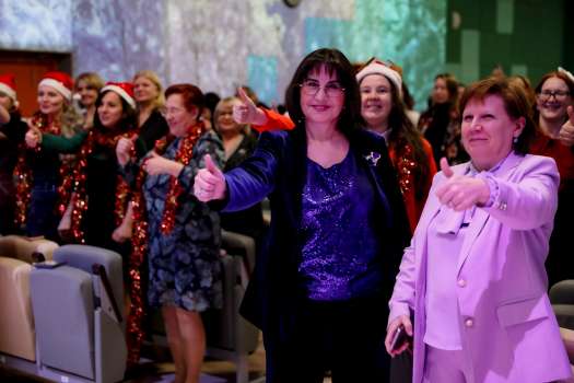 Праздничную атмосферу дополнили интерактивные игры, музыкальные паузы и общее вовлечение зала, что сделало концерт по-настоящему тёплым и объединяющим событием. Завершающим акцентом стало символическое обращение к 2026 году — году Огненной Лошади, с пожеланиями движения вперёд, энергии, сплочённости и уверенности в новых свершениях.