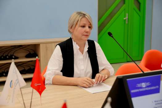 В рубрике «Слово вузам» выступила Нечаева Наталья Викторовна, кандидат филологических наук, доцент кафедры перевода ФГБОУ ВО «Российский государственный педагогический университет им. А. И. Герцена», президент Ассоциации преподавателей перевода. Наталья Викторовна рассказала об актуальных изменениях в языковом ландшафте международного сотрудничества Российской Федерации, а также о региональных вариантах английского языка в отраслевой коммуникации пространства БРИКС+, которые учитываются при формировании языковых компетенций будущих специалистов.