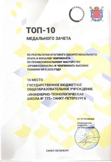 Инженерно-технологическая школа № 777 — единственная общеобразовательная школа среди учреждений специального профессионального образования, вошедшая в ТОП-10 лучших площадок.