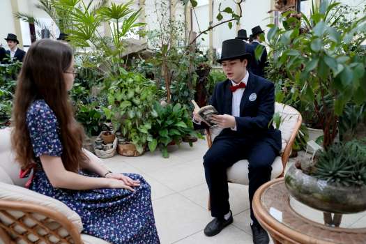 Именно в таком театральном формате прошёл урок русской литературы в 9.1 классе. Он был организован в виде костюмированного бала по произведениям Александра Сергеевича Пушкина и состоялся в зимнем саду школы — пространстве, подчеркнувшем камерность и поэтичность происходящего.