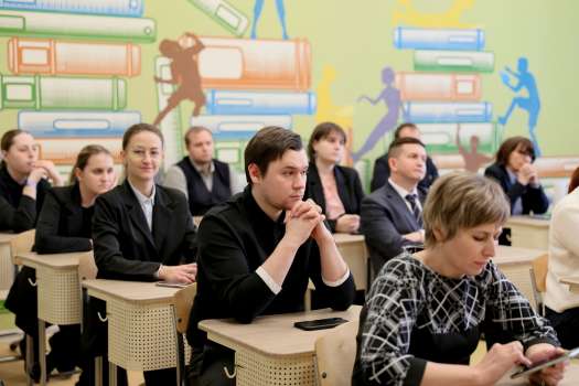 Заместитель директора по воспитательной работе Анастасия Андреевна Тетерина обратила внимание на вопросы профилактики девиантного поведения обучающихся, формирования навыков бесконфликтного общения, ознакомила педагогов с алгоритмом действий в конфликтных ситуациях и требованиями к обеспечению безопасности при выездных мероприятиях.
