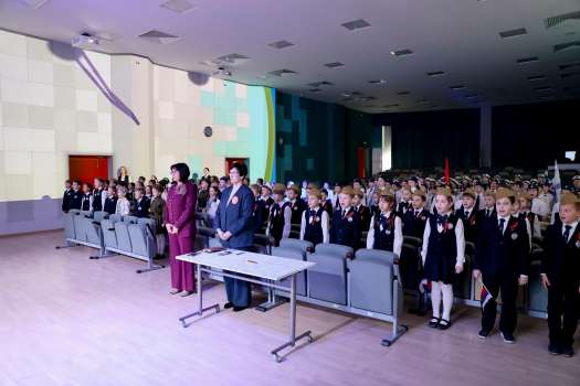 Директор школы Вера Владимировна Князева поздравила участников с наступающим праздником и отметила: «Сегодня наши солдаты защищают суверенитет страны, её безопасность и будущее. Но ответственность за судьбу Родины лежит и на подрастающем поколении: именно вы своими знаниями, трудолюбием и стремлением к развитию формируете завтрашний день России, её новые достижения и победы».