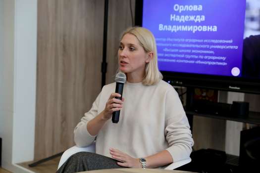 Гостья рассказала о своём профессиональном пути. Двадцать лет назад Надежда Владимировна начала карьеру с анализа рынков биотехнологий, пищевой промышленности и упаковки. Одним из ключевых этапов её деятельности стала модернизация крупного советского завода в Новосибирске, выпускавшего биотехнологические препараты для сельского хозяйства и пищевой промышленности.